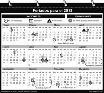 Díaz expresó que ‘saltar de 180 a 190 días no digo que será imposible, pero será complicado porque hay dos semanas de receso invernal, están los 45 días corridos de licencia docente, los feriados inamovibles y feriados puentes del 2013, más los feriados provinciales que caerán entre semana. Estamos viendo cómo armar el calendario escolar’.