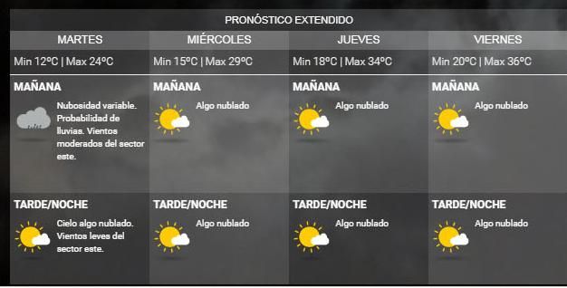 De acuerdo al pronóstico extendido del SMN, la temperatura irá en ascenso con el transcurso de los días. Para el miércoles, se elevaría a una máxima de 29°.
