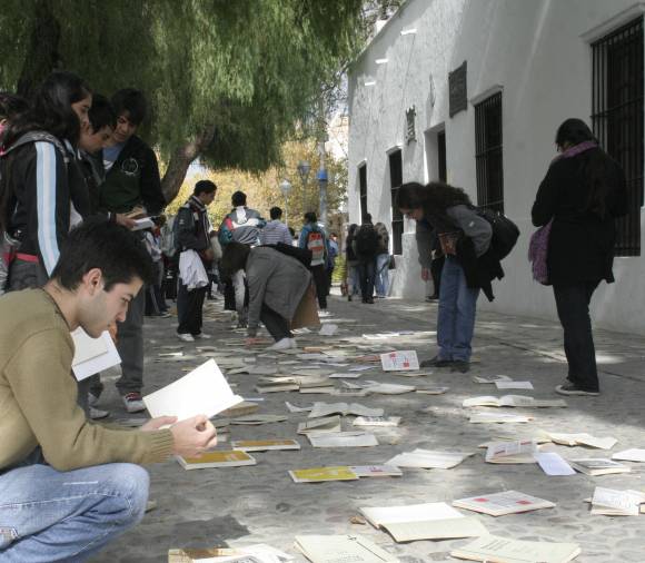 Libros abiertos tirados en la vereda y gente que se acercaba, leía y se llevaba una edición de manera gratuita. Las hojas contrastaban con los adoquines. A esto se sumó que a muchos les llamó la atención la disposición que tenían los ejemplares, sobre todo porque a simple vista parecía que estaban tirados. Esta fue la postal que dejó ayer la intervención artística que se montó en la puerta de la Casa de Sarmiento, por el Día Internacional de los Museos.