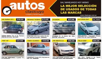 San Juan.- Este viernes, con la edición impresa de DIARIO DE CUYO, los lectores podrán adquirir el suplemento ClasiCuyo Autos.