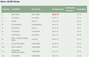 San Juan sigue llamando la atención a nivel nacional, en esta oportunidad es por las altas temperaturas que se registraron esta tarde. A las 16 el Servicio Meteorológico Nacional registró para la provincia una temperatura de 42,6, superando nuevamente la barrera de los 40 grados para este mes de noviembre.