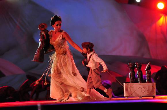Con un traje colorido y plumas, la chuña hizo su entrada en escena y no hubo necesidad de que los locutores la presentaran para que la gente la comenzara a aplaudir. Su presentación duró menos de 30 segundos, aunque nunca abandonó el escenario para permanecer siempre al lado de su amo. Este animal era la mascota preferida e inseparable del Gran Maestro de América. A las 23 horas, puntualmente, comenzó el espectáculo. Uno que, nuevamente como en el 2010, se llevó la ovación de los presentes por su majestuosidad. Esto sucedió durante el musical que cerró la Fiesta Nacional del Sol 2011, en el Autódromo El Zonda-Eduardo Copello.