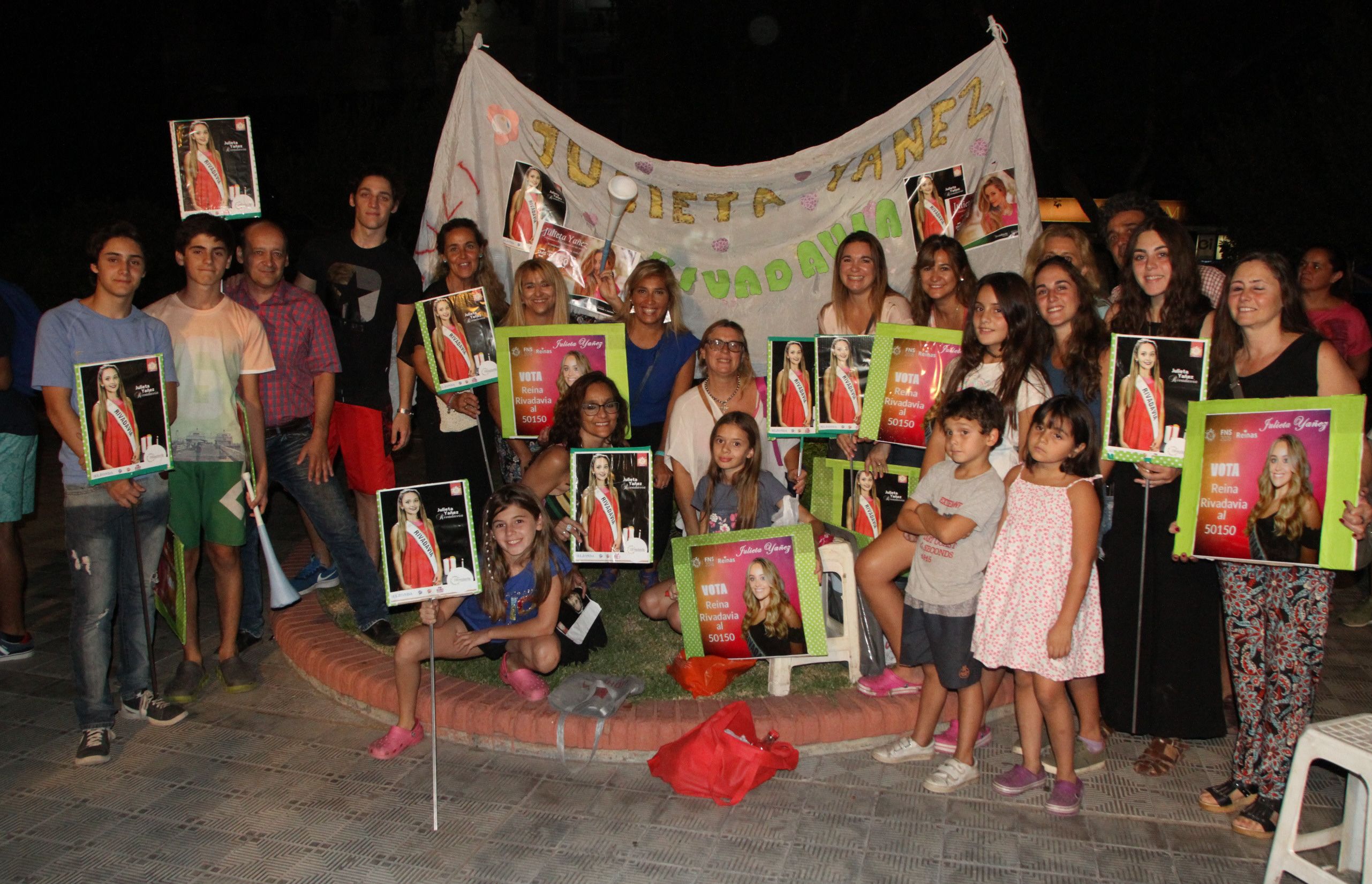 Gran respaldo. Julieta Yañez, la reina de Rivadavia, también recibió un fuerte recibimiento de amigos y familiares. Su madre, Nira Bogni, organizaba el grupo que resaltaba al sur de la plaza.