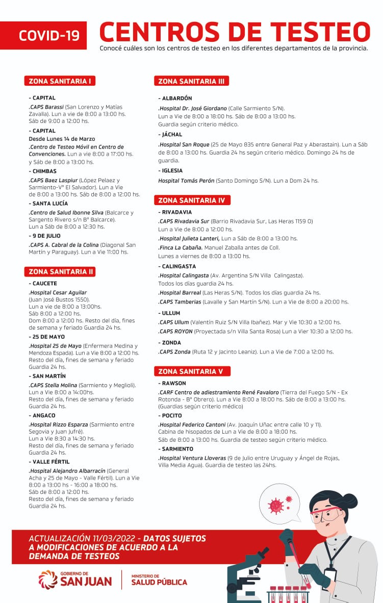 Salud Pública informó los nuevos lugares y horarios de los centros de testeos y vacunación de coronavirus que estarán vigentes desde este lunes.