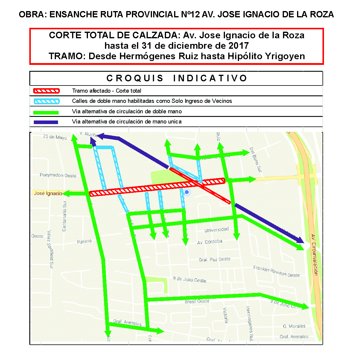 El cronograma de cortes y desvíos hasta el 31 de diciembre de 2017
