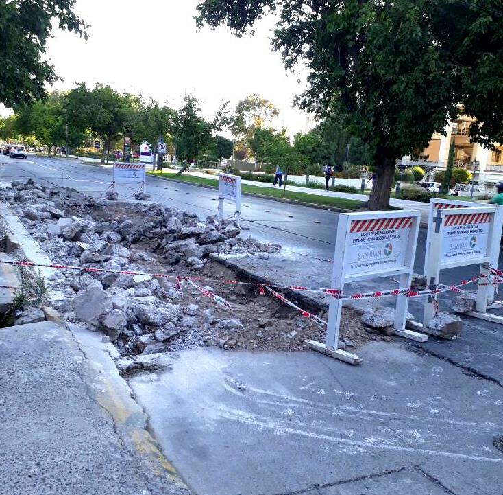 El municipio de la Ciudad de San Juan continúa con las obras de reparación de losas de hormigón realizadas y otras que siguen llevando a cabo sobre calle España, en el tramo comprendido entre Libertador y 9 de Julio.