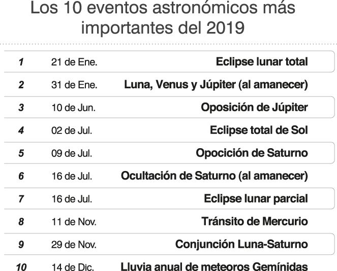 Pero aunque sea el show más importante del año, hay otros con las estrellas, como oposiciones (cuando un planeta está totalmente iluminado desde este punto de vista), ocultamientos (se interpone la trayectoria de la luna a la de un planeta), tránsitos (un planeta por delante del Sol), y lluvias de estrellas, entre otros.