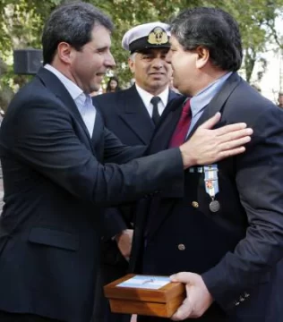 La actividad comenzó anteanoche, con la vigilia que se desarrolló en el interior de una carpa con elementos simbólicos que la Fuerza usó, como armas, trajes y fotografías. Ya por la mañana, más de 200 hombres que fueron parte de la Armada colmaron la plaza junto a sus familias con sus insignias en el pecho. Y fueron acompañados por el vicegobernador Sergio Uñac y autoridades de la Municipalidad de la Capital.