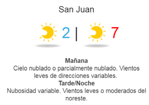 Una buena y una mala para este miércoles en San Juan. La noticia alentadora es que tras varios días nublados vuelve a aparecer el Sol, pero así todo no ayudará para elevar la temperatura.