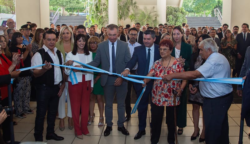 A su llegada al Centro Cívico, el gobernador Orrego plasmó su firma para que sea trasladada al Archivo General, en la sección de Rúbricas de Gobernadores. Seguidamente, el primer mandatario local cortó la cinta que la dejó formalmente inaugurada la exposición y se leyó el decreto que la declara de Interés Cultural y Educativo.