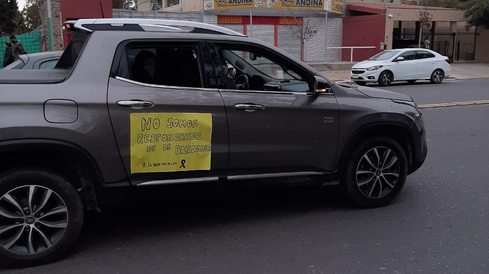 Estuvo a tono con la que se realizó en varias ciudades del país. En San Juan fueron al menos 7 cuadras de vehículos protestando por la ciudad, recorriendo los hospitales Rawson y Marcial Quiroga.