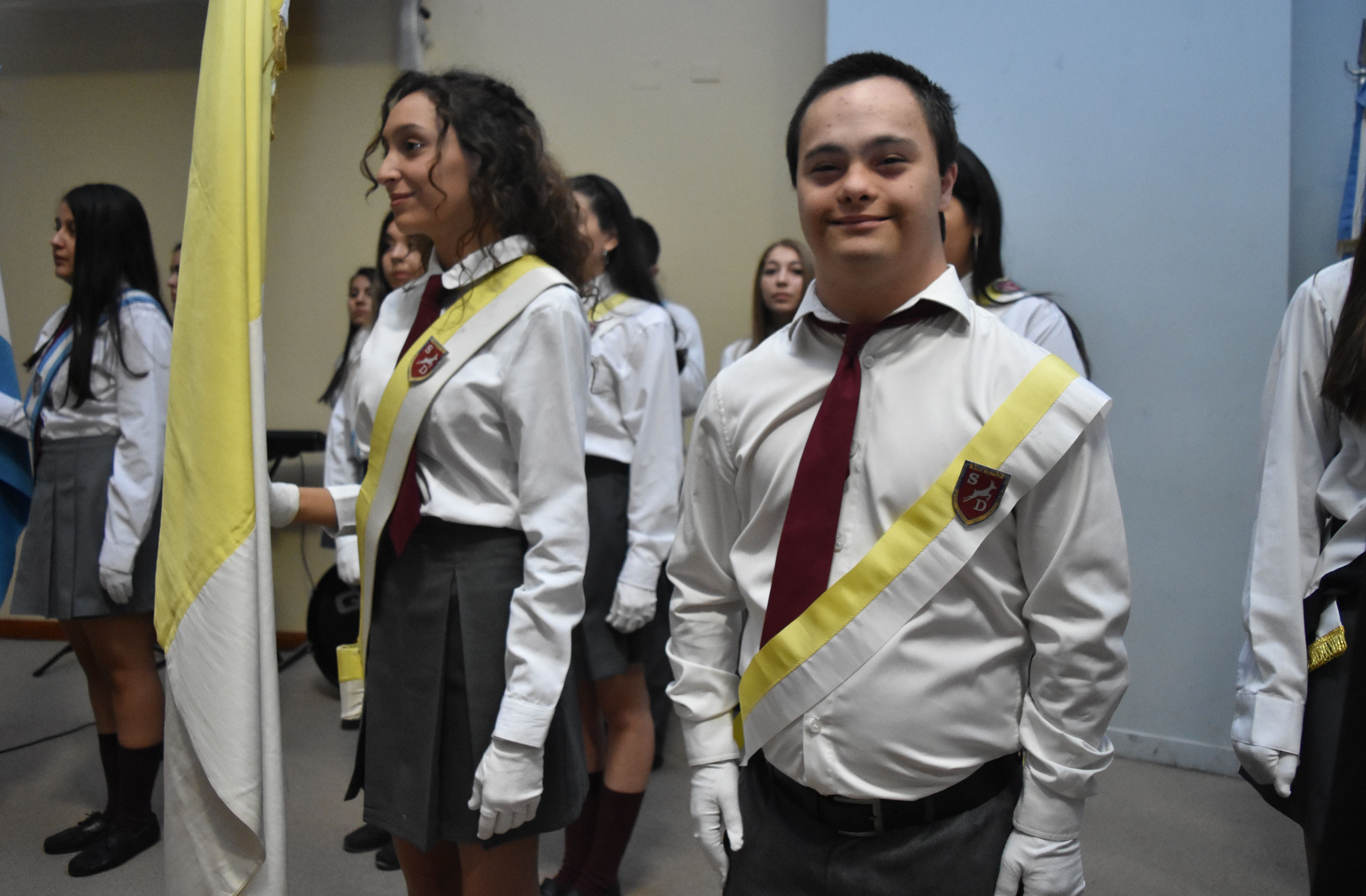 La última conquista. Tomás Menegazzo integra el cuerpo de bandera papal del Colegio Santo Domingo. Además de haber conseguido ese logro ya en la primaria, forma parte del seleccionado argentino de rugby inclusivo.