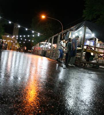 Sin muchos rodeos, previendo lo que las espesas nubes ya estaban anticipando desde la tarde temprano, la gente encargada de los stands y ranchos de comidas comenzó a sacar sus nailons para cubrir sus puestos. Así, con esos techos improvisados comenzaron a prender sus hornallas y, a los pocos minutos, el olor a papas fritas y choripanes impregnaba la plaza departamental a pesar de que las gotas de lluvia ya estaban presentes. Así, con el mismo clima que el año pasado, largó ayer pasadas las 20.30 la tradicional Fiesta de Santa Lucía.