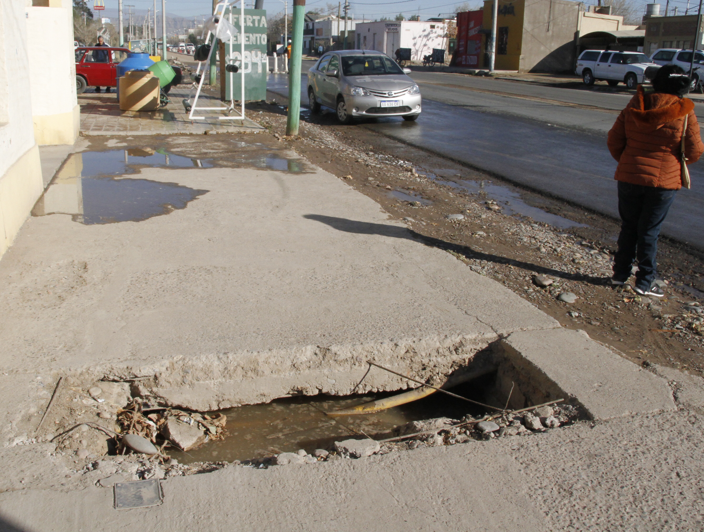 "La gente que espera el colectivo no sabe dónde pararse, los vecinos no tenemos por dónde salir si tenemos que hacer las compras. Además, hay que caminar en alguna zona por el medio de la calle y los autos pasan y nos mojan. Son muchos problemas juntos y esto nos pasa seguido. Estamos cansados".