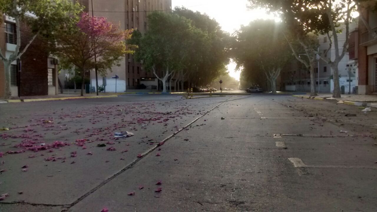 Pasadas las 7 comenzaron a percibirse las ráfagas de viento, que corrieron con picos de 40 km/h. Así, la luz del Sol y el cielo despejado quedaron opacados por una nube de tierra.