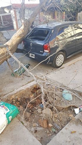 Otro auto sufrió las consecuencias de un árbol caído tras el fuerte viento. Ocurrió en calle Tucumán pasando Cereceto. Los daños de vehículo no son mayores y no hay personas heridas.