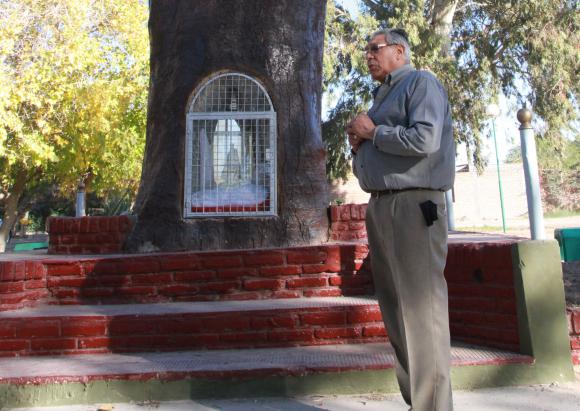Todo comenzó hace 10 años y tras una “desgracia” de la naturaleza. Al realizar una obra de cloacas en el lugar, le cortaron sin querer una de las raíces al gran eucaliptus que estaba en medio de la plazoleta del barrio y se secó. Pero los vecinos no quisieron que lo sacaran. Y optaron por reciclarlo. “Como su tronco era muy ancho quisimos aprovecharlo y colocar en su interior la imagen de la Virgen. Primero le talaron todas las ramas secas para evitar peligro. Luego se le hizo un hueco en el centro para introducir una imagen de la Medalla Milagrosa que compraron algunos promesantes”, dijo José Lima, uno de los vecinos del barrio.