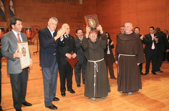 Luego llegó lo mejor: los vecinos ilustres. El primero en recibir el reconocimiento fue fray Pablo Ares. Justo después de que los locutores dijeron su nombre la ovación fue tal que la alegría se contagió a todos de manera inevitable. Más aún, al ver la cara de emoción del religioso, que con la paciencia que lo caracteriza saludó a cada una de las autoridades que estaba sobre el escenario. Luego de él 9 personas más, algunas ya fallecidas, recibieron el reconocimiento. Y junto cada uno de los homenajeados, las lágrimas y los gritos se escucharon desde algún rinconcito del público. Es que, los 10 vecinos llevaron sus propias hinchadas, quienes no pudieron dejar de festejar al recibir la distinción. La entrega de las placas para los vecinos estuvo a cargo del gobernador, José Luis Gioja y el intendente de Capital, Marcelo Lima, entre otros funcionarios.
