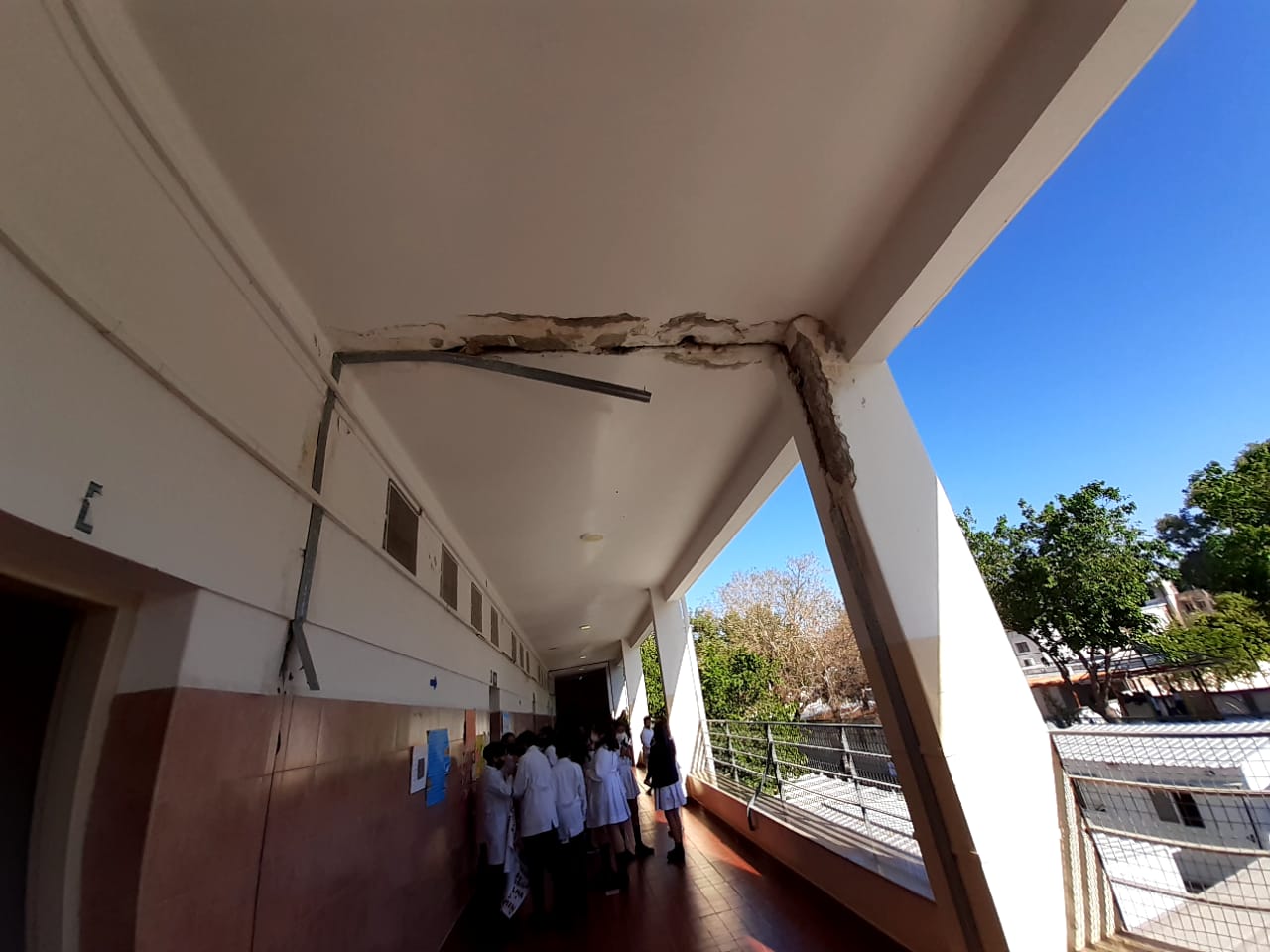 Paredes agrietadas, revoques caídos, sólo dos sanitarios en condiciones y aulas improvisadas, son algunas de las principales marcas que dejó el sismo en el edificio y que 8 meses después aún son visibles.