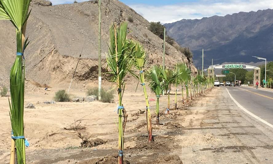 El municipio de Zonda continúa con el plan de parquizar y ornamentar diferentes sectores del departamento para potenciar la belleza del paisaje natural. En este marco realizó la plantación de 100 palmeras en el ingreso a la comuna y ambos costados de la ruta.