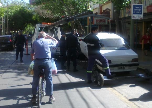 Un rutinario operativo de la grúa municipal terminó ayer por la mañana en un gran revuelo e intervención policial. Es que mientras un operario le estaba poniendo las fajas al auto para llevarlo a la playa de secuestro; el propietario del vehículo, un hombre de 40 años (no fue identificado), empezó a discutir y, aprovechando que la puerta aún no estaba fajada, se metió y encerró con llave. Para poder sacarlo tuvo que intervenir la Policía.