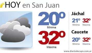 San Juan.- El Servicio Meteorológico Nacional anunció para la jornada de hoy probabilidad de viento Zonda y una temperatura máxima de 32 grados.