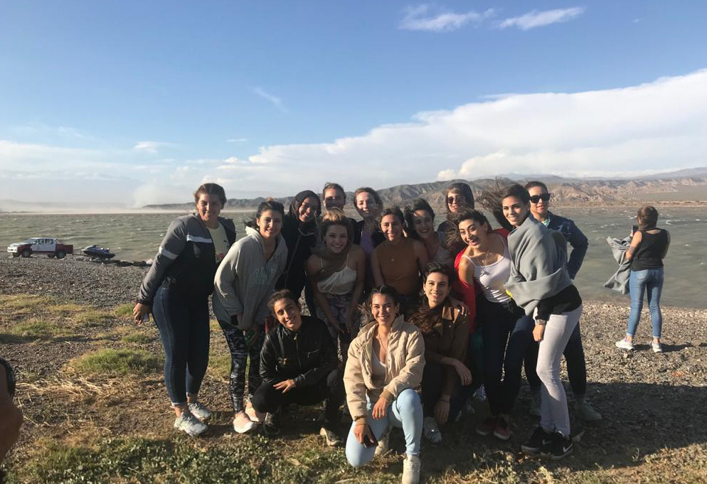 El día anterior a la subida a la mina, el contingente hizo noche en el hotel de Pismanta. Antes, hubo una visita a la planta potabilizadora de Rodeo, con el asesoramiento de Alberto Abecasis, gerente de Desarrollo Sustentable de Veladero. Luego visitaron el dique Cuesta del Viento, donde entre ráfagas, las chicas aprovecharon para sacarse selfies.