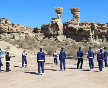 ‘Es el único equipo argentino que estará en el Mundial y por eso buscamos un lugar identificatorio de la provincia para representar la idea de San Juan al mundo’, contó Patricia Quiroga, a cargo de la filmación. De todos modos, la grabación siguió un guión que se basó en que dos grupos de jugadores que visitaban el Valle de Luna coincidieron en una de las formaciones geológicas. Y para ponerle adrenalina al encuentro decidieron jugar un partido de vóley.