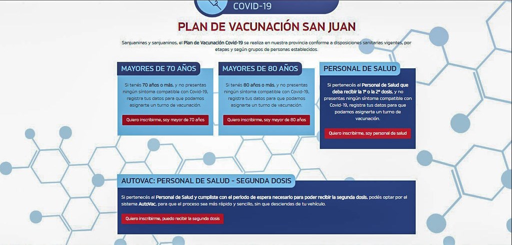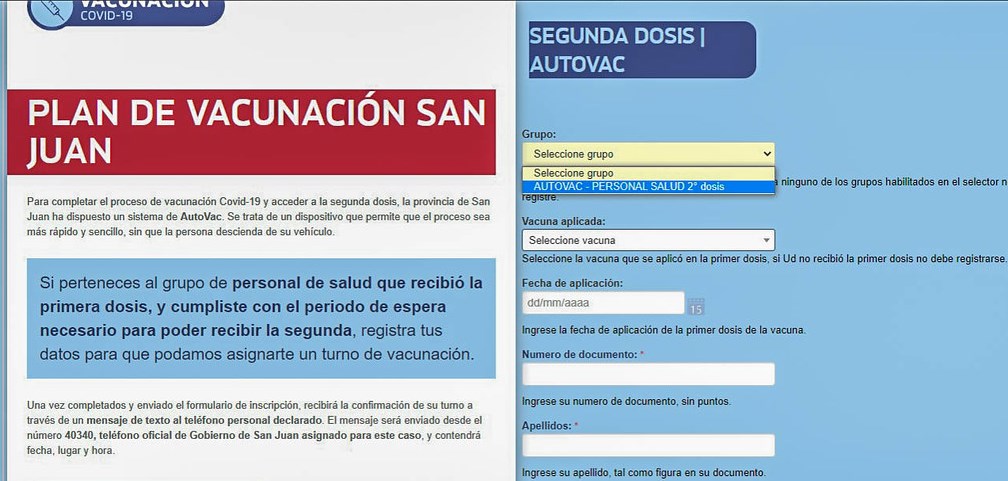 Desde este sábado, está disponible la página web en la pueden inscribrirse los sanjuaninos que deben recibir la segunda dosis de su vacuna contra el coronavirus. Y para agilizar el operativo, las autoridades ponen a disposición, de manera opcional, la modalidad AutoVac, a la que se puede acceder en el Estadio San Juan del Bicentenario, ubicado en Pocito.