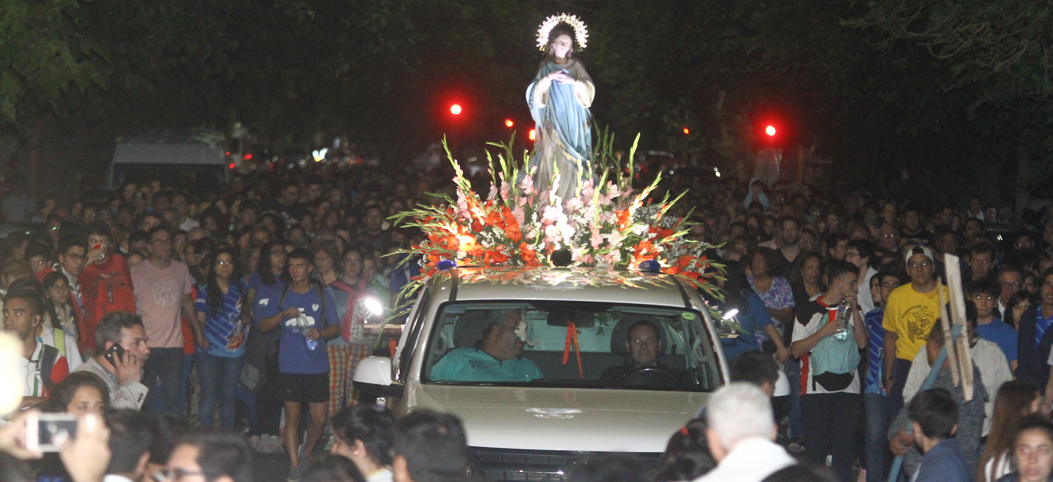 Los cantos y el entusiasmo fueron características destacadas durante la caminata que duró una hora aproximadamente y que culminó en la Parroquia Inmaculada Concepción donde había otro centenar de personas que no participaron de la procesión, pero que sí estuvieron durante la celebración de la misa que ofició Orlando Rugieri, invitado al evento.
