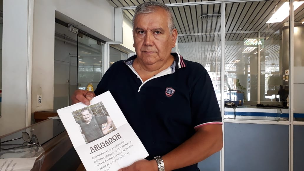 "Este hombre entra a tu casa por amistad y confianza, en la noche te visita, te da sedantes durante la cena y abusa de tus nenas mientras dormís", reza el cartel que empapela parte de la ciudad.