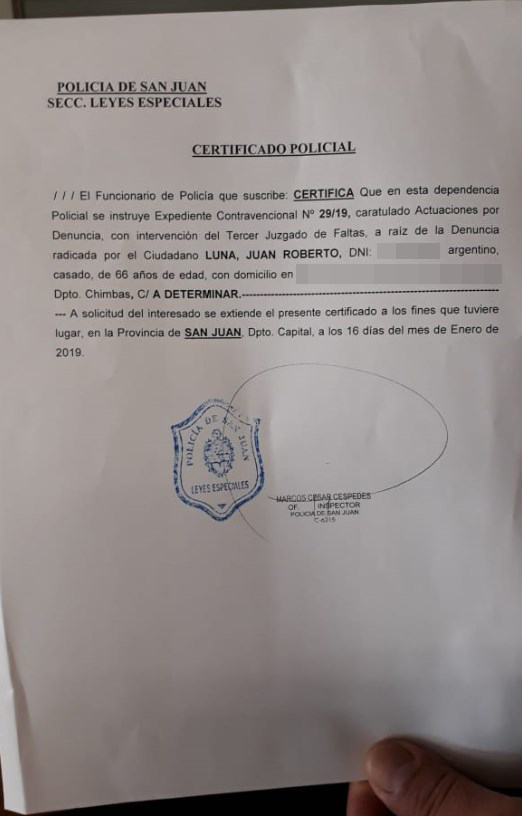Al parecer, el tema había quedado ahí hasta que hace dos días, su jefe le pidió charlar con él. "Yo soy sereno y me llamó para preguntarme si tenía problemas con alguien, algún inconveniente, porque también había visto el cartel. Le dije que no tenía nada que ver y me fui hasta la Central de Policía para hacer la denuncia", dijo a DIARIO DE CUYO.