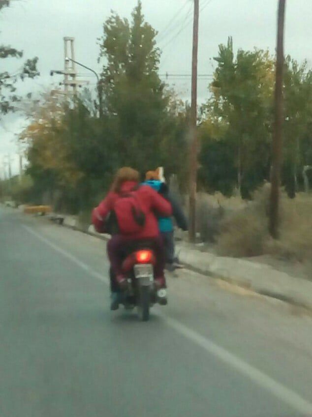 Si cuatro personas en una moto ya son sinónimo de alerta inminente, qué decir si uno de ellos va colgando, sólo sostenido por el brazo de su madre. Esa imagen se vi esta mañana sobre calles Pellegrini y Yornet, de La Bebida, lugar en el que la semana pasada un joven albañil perdió la vida cuando un minibús chocó la moto en la que se trasladaba.