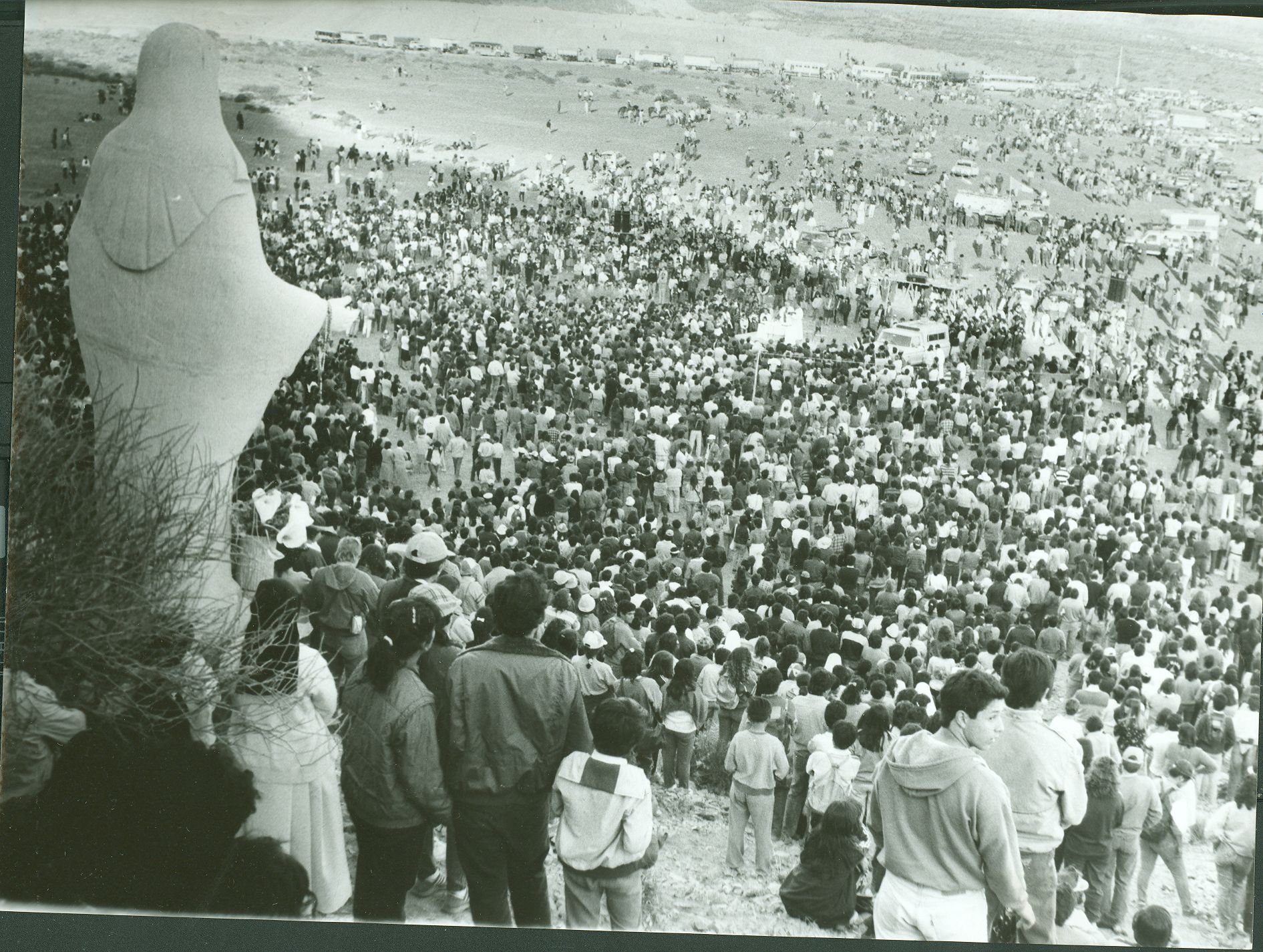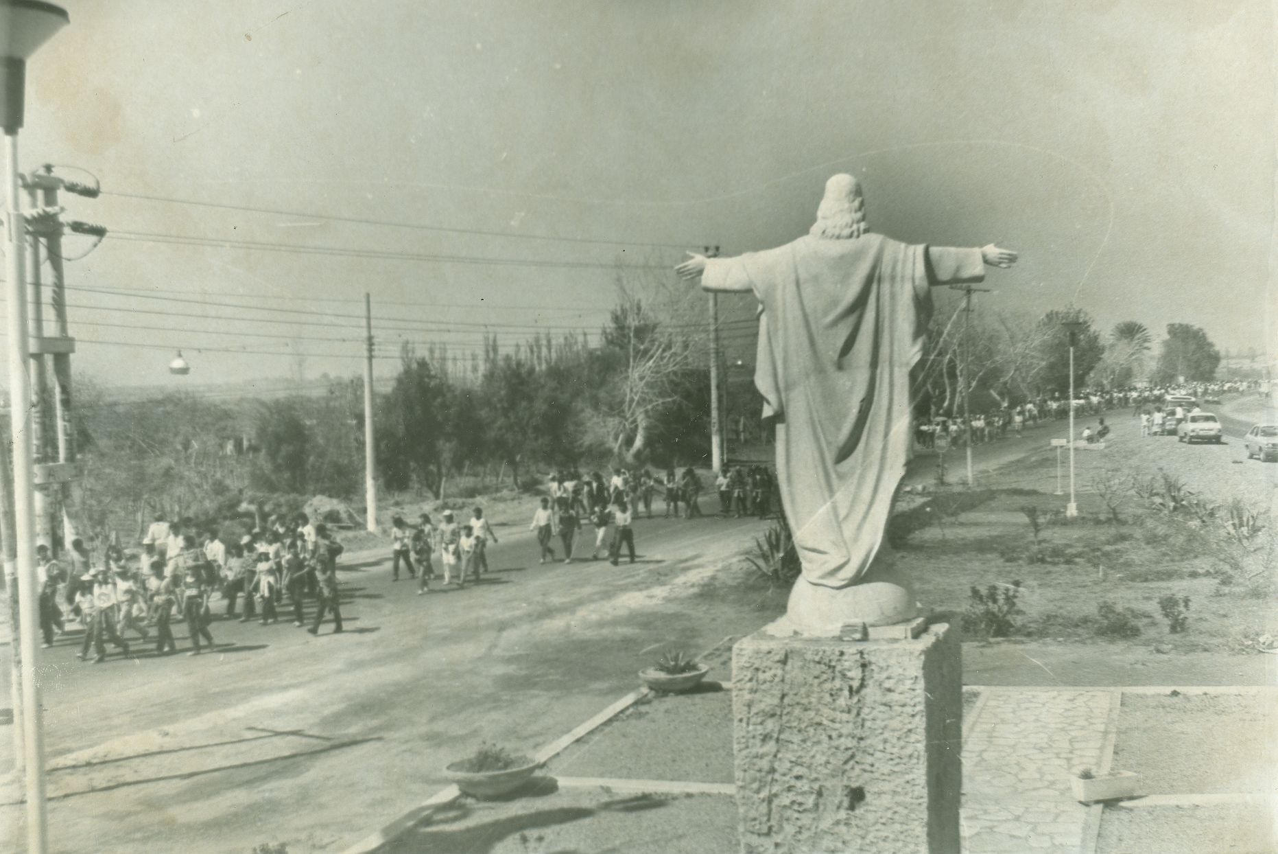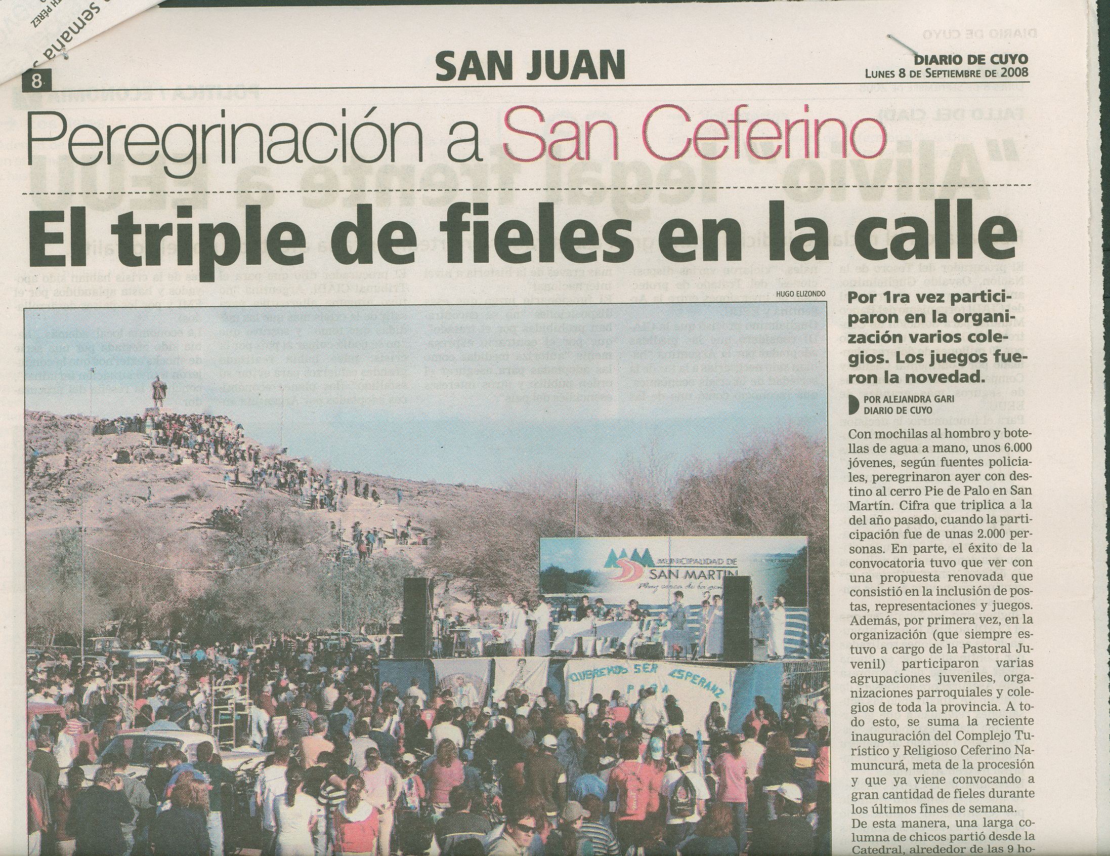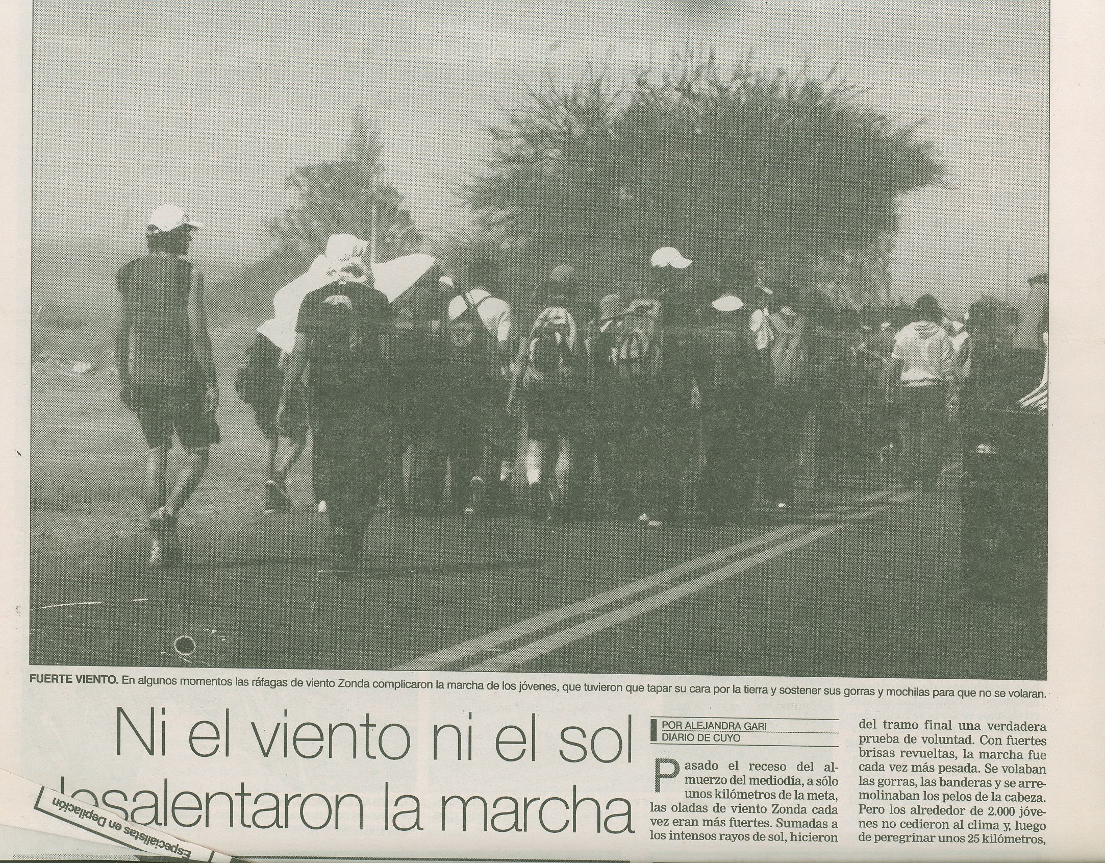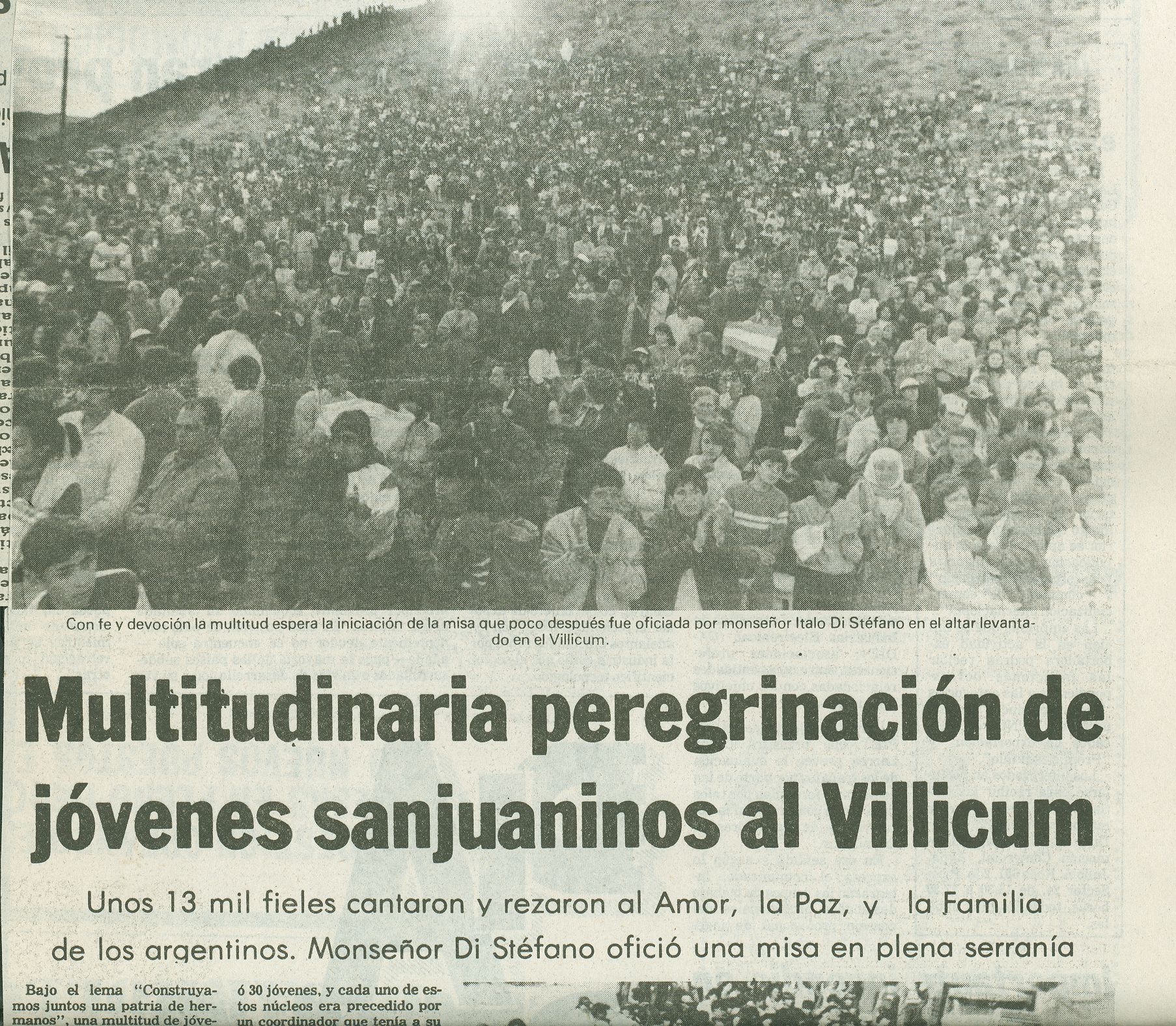 “Rostros enrojecidos por el calor y la fatiga, con los brazos casi inertes, las botellas vacías en las mochilas y sus pies palpitantes y ampollados, así llegaban al Cerrillo, dice la crónica de Diario de Cuyo del 4 de septiembre de 1995. El día anterior miles de personas habían recorrido 37 kilómetros desde la catedral hasta el cerro pocitano.