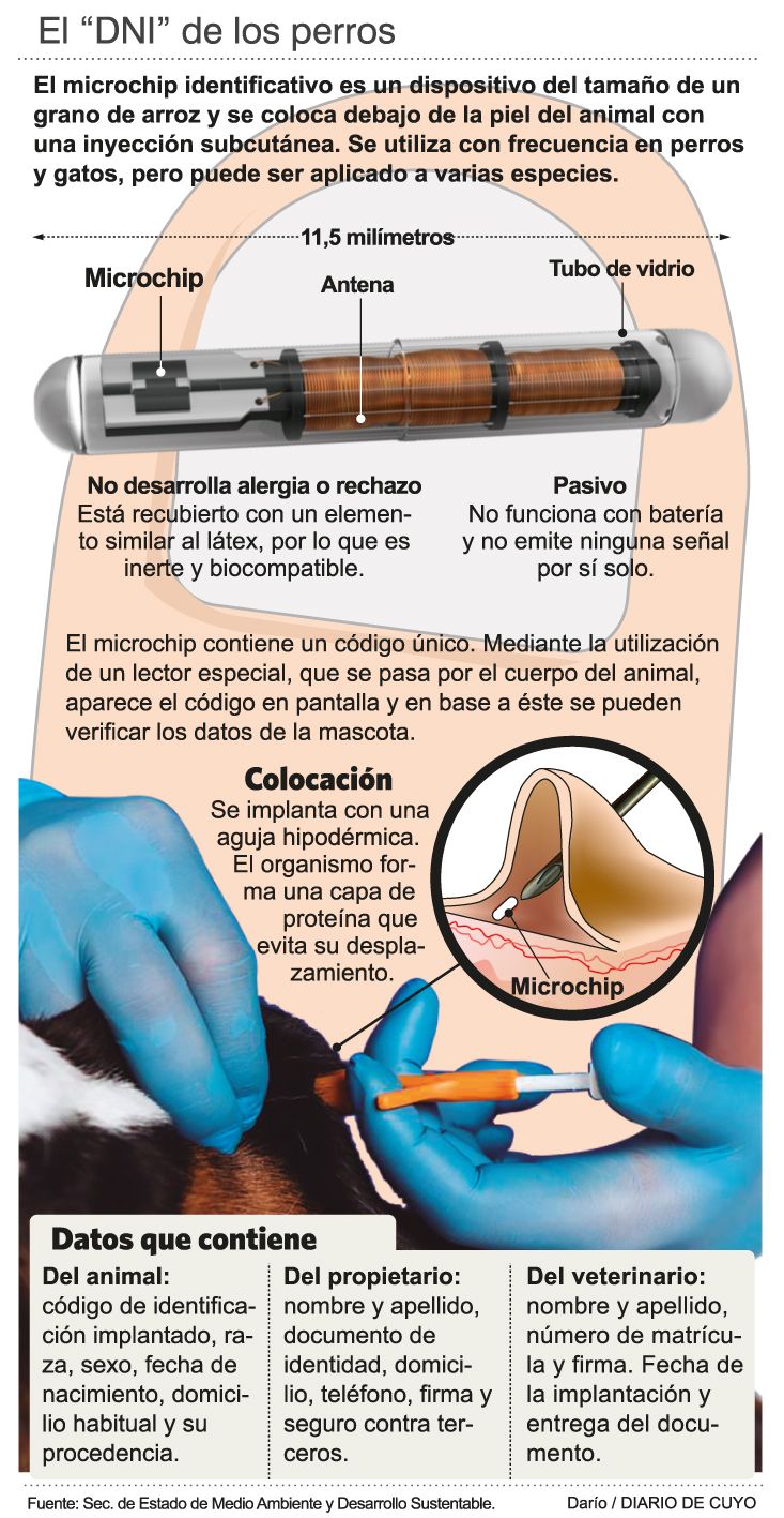 En este contexto, Alejandra Cano a cargo del programa Acompáñame informó que a partir de hoy será obligatorio que el perro tenga su chip colocado (ver infografía). "La ley daba un plazo para la presentación espontánea, pero ahora -desde hoy- todos los que sean encontrados en incumplimiento de esta ley serán infraccionados", dijo y comentó que trabajarán los inspectores de Ambiente en conjunto con la Policía de San Juan. A la vez, contó que las actas de infracción tendrán duras sanciones. La ley prevé multas de entre 15 mil y 30 mil pesos.