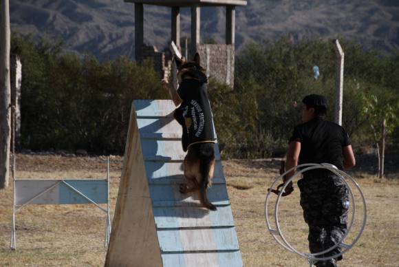 Mostraron cómo caminan junto a los efectivos sin correas, cómo responden a órdenes básicas como sentarse o acostarse. Luego se animaron a saltar entre aros de acero. Subieron escaleras y hasta pasaron dentro de túneles formados por tachos de metal. Y como hay perros para detectar narcóticos y otros para seguridad hallaron paquetes con olor a marihuana que fueron escondidos y demostraron que están preparados para responder a ataques. De esta forma, esta sección que funciona desde 2012, le puso risas a la mañana y a sus superiores.