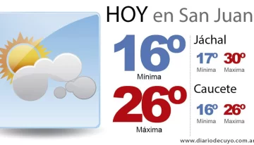San Juan.- Pese a la llovizna con la que arrancó la jornada de jueves, el Servicio Meteorológico Nacional prevé para hoy una una máxima de 26 grados con viento del Este y nubosidad variable.