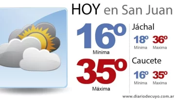 San Juan.- El Servicio Meteorológico Nacional anunció para este lunes una jornada calurosa, pese a que arrancó con viento del Sur que trajo alivio a un fin de semana de mucho calor.