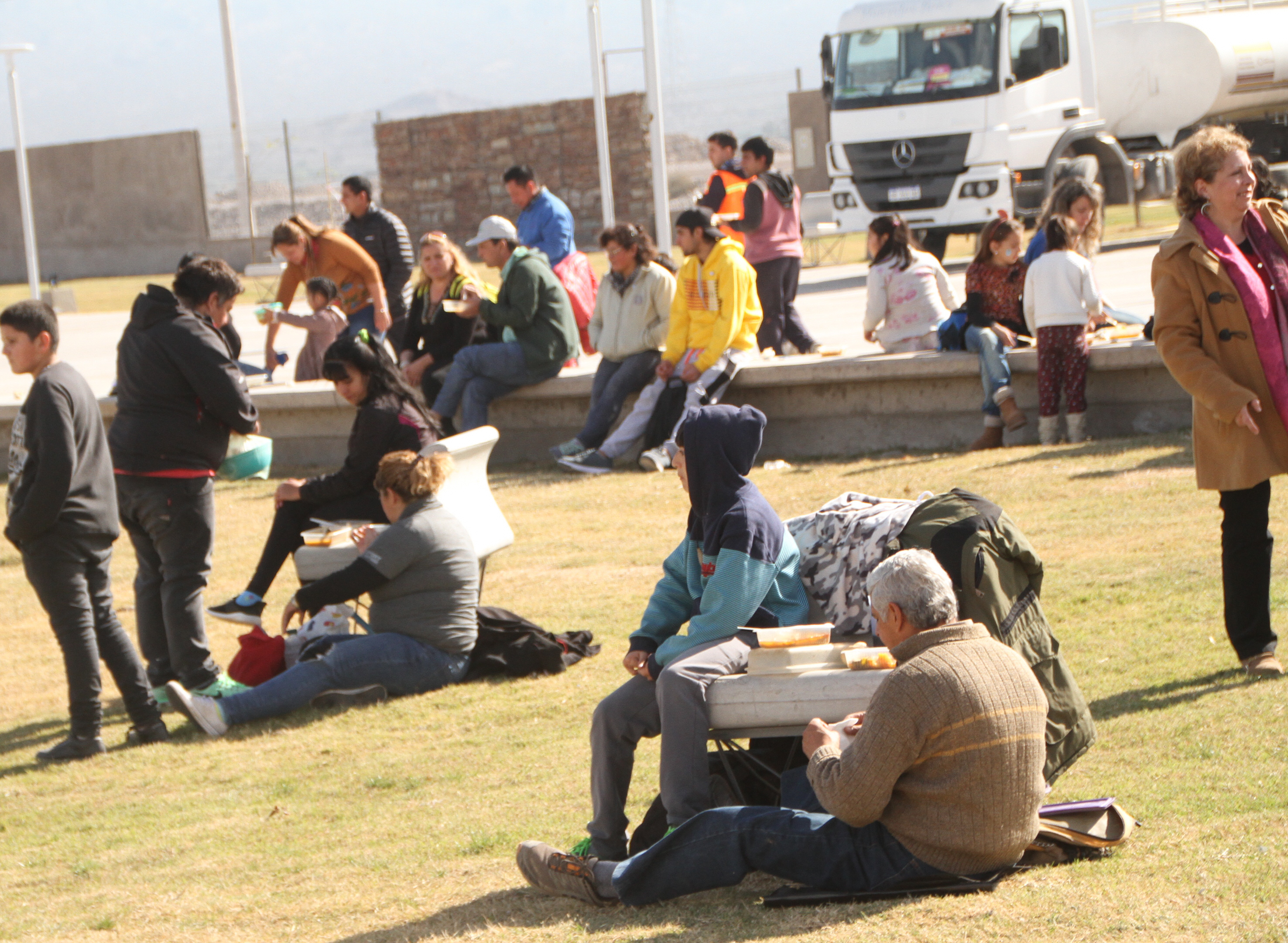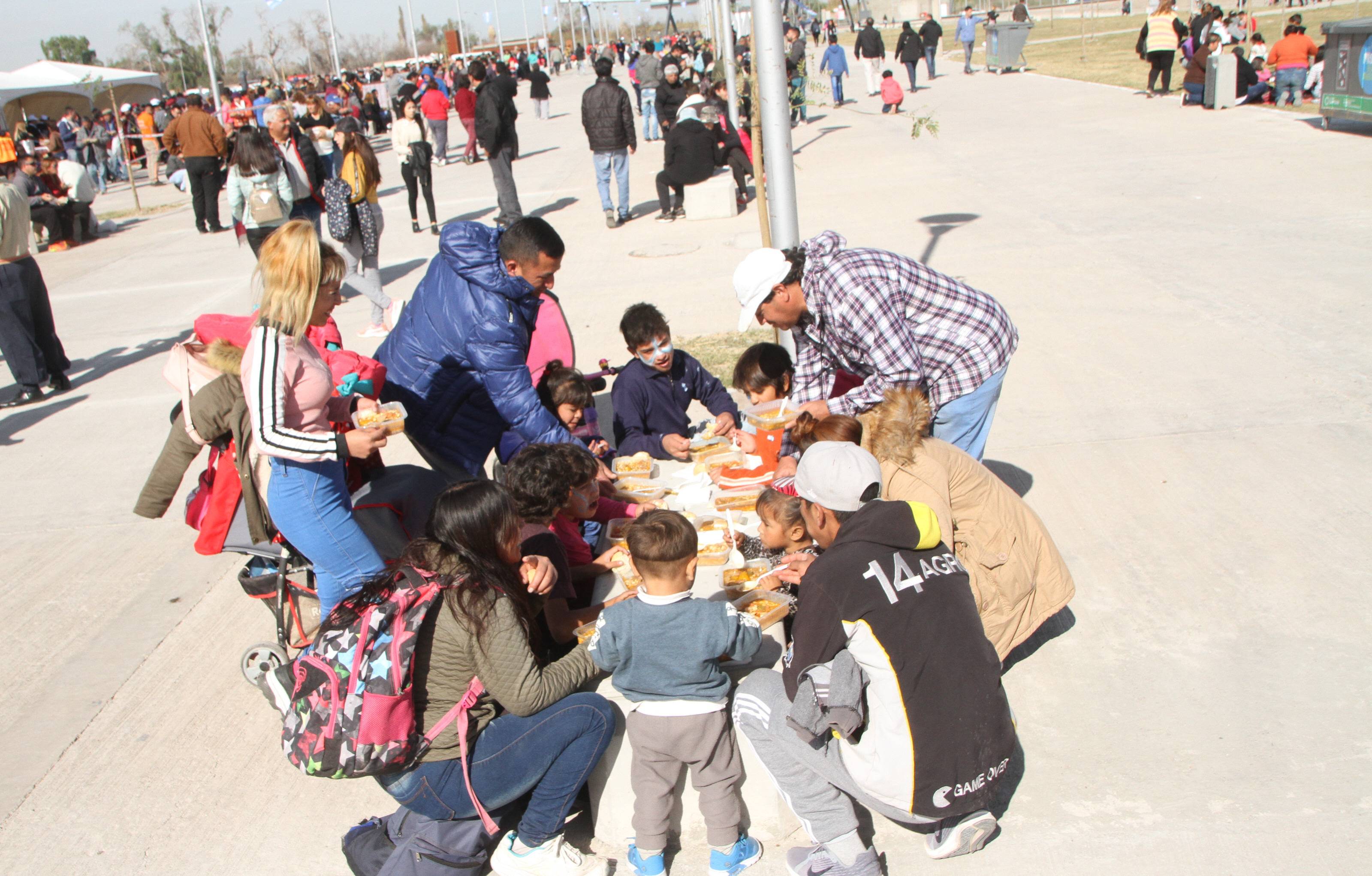 "Vine con mis hijos y mis hermanas para pasar un día diferente. Nos enteramos que repartían locro e hicimos fila por más de 30 minutos para probar esta delicia", dijo Zulma Rodríguez una de las sanjuaninas que disfrutó del festejo. Al igual que Zulma y su familia, hubo muchos grupos que improvisaron su picnic para saborear el locro que fue hecho por el DIM 22 y por los hermanos Gómez que también hacen las tradicionales paellas del Súper. Sentados sobre mantas y bajo el sol, que hizo que la jornada fuera agradable, los sanjuaninos se adueñaron de muchos rincones. "Trajimos unos bancos plegables y mi cuñado vendrá con una mesa para que comamos como si estuviéramos en el parque", dijo Rosario Orellano, otra de las mujeres que llegó en familia.