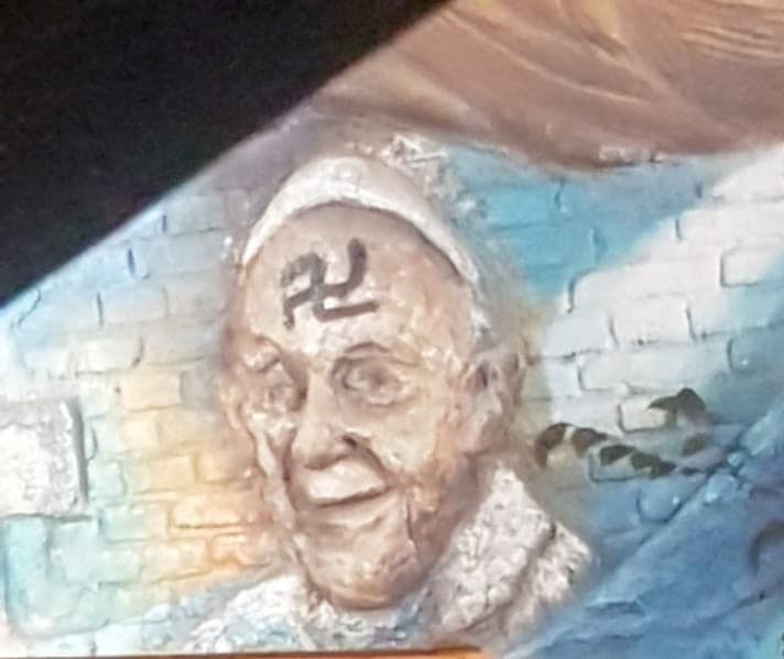 Pintaron un símbolo nazi sobre un mural del Papa en Rivadavia