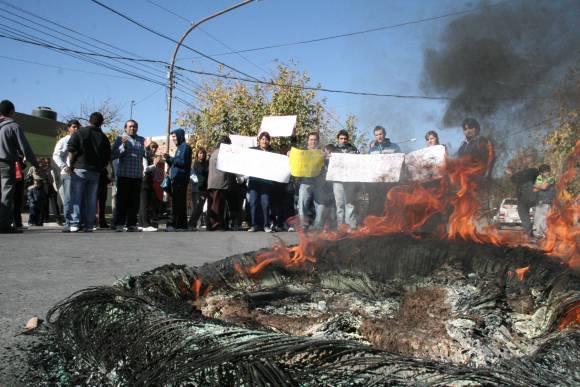 Un grupo de familias, integradas por personas que compraron un lote en el futuro Barrio Andacollo 9, copó ayer por la mañana la esquina de Mendoza y Remedios Escalada de San Martín, frente a la plaza de Chimbas. Enojados, quemaron gomas y cortaron el tránsito durante gran parte de la mañana, como una forma de reclamar por el atraso en la construcción del barrio, cuyos terrenos aseguran haber pagado. Pero, a la vez, dijeron que en el contrato no se establece plazo para la obra.