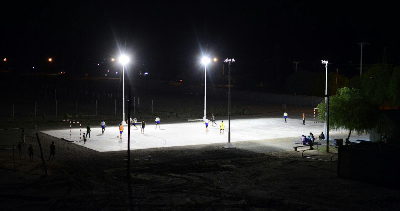 El intendente de Sarmiento, Mario Gustavo Martín, encabezó el acto de inauguración de playón y luminaria en Club Social y Deportivo San Martín de Cañada Honda. El playón mide 40 por 20 metros. Las 4 torres están equipadas con apliques alojenados de 400W.