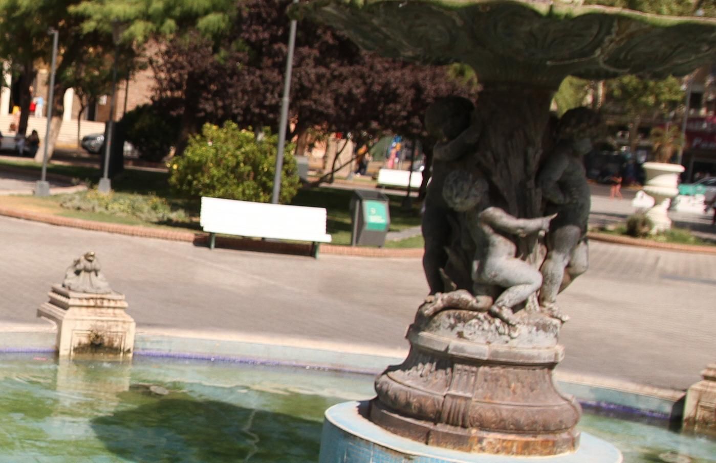 Las figuras infantiles que hay en la base de la escultura son las que revelan más el deterioro. Gran parte de su superficie está descascarada y herrumbrada. Lo mismo puede verse en los dos platos que forman parte también de la fuente. Cualquiera que ve esta imagen puede imaginar que lleva décadas sin recibir mantenimiento, sin pensar que sólo pasaron 9 meses de su restauración. ‘Hay un par de factores que hay que tener en cuenta para entender el porqué de tan rápido deterioro. Primero esta fuente tiene 150 años y es de hierro fundido, expuesto a la oxidación por esta en contacto permanente con el agua. Segundo, que el agua de San Juan es muy pesada y salitrosa por lo que las sales e impurezas que contiene se van pegando al hierro generando su mal estado. Por estas condiciones cuesta mantener la fuente en buenas condiciones’, dijo Jorge Cocinero, de Accodepas, asociación veedora de la restauración. Según Cocinero, esta fuente necesita como mínimo un trabajo de restauración y mantenimiento una vez al año. También, que debería instalarse un ionizador en el ingreso del agua a la fuente para que filtre sus impurezas y sea menos corrosiva. Lisandro Cevinelli, a cargo de la Dirección de Ambiente de la Municipalidad de la Capital, también coincidió que el deterioro de la fuente puede ser resultado del agua.