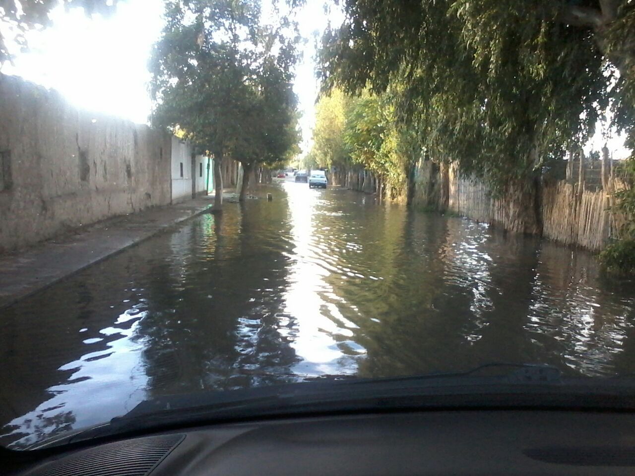 Un vecino explicó a DIARIO DE CUYO que "en la calle las acequias están tapadas por el asentamiento que hay. Alguien abre la compuerta de riego de calle 12 y Aberastain y la traba con cadena. Entonces el agua sale e inunda la calle". Además, el hombre manifestó que "pasa todas las semanas".