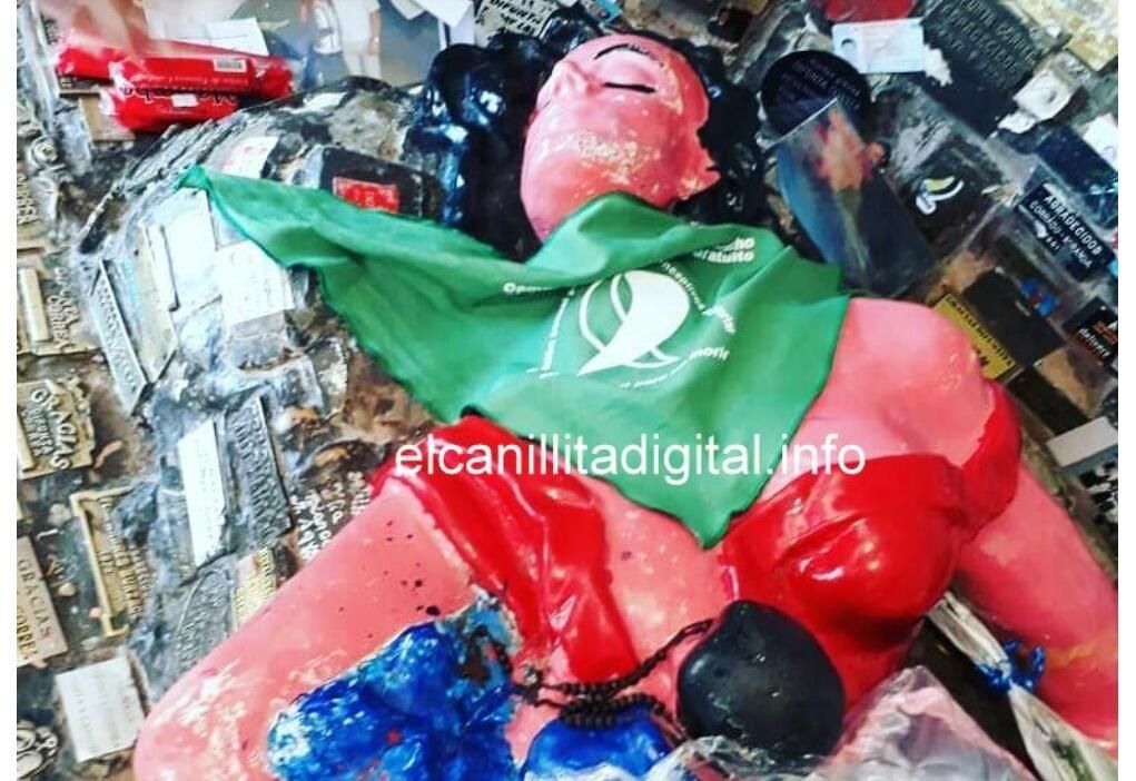 La imagen de la Difunta Correa con el pañuelo verde utilizado para simbolizar a quienes están a favor del aborto generó polémica y diversos comentarios este sábado.