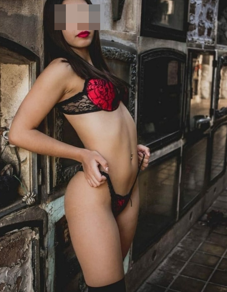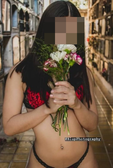 La joven posa semi desnuda entre los nichos del cementerio de la Capital. Sólo vestida con ropa interior, no tiene reparos en apoyarse sobre las tumbas y posar muy sexy para la cámara del fotógrafo Gabriel Flores, de la agencia Blup Photography.