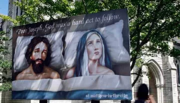 La vocera de la diócesis católica, Lyndsay Freer, dijo que el cartel insinuaba que la Virgen María y José acababan de mantener relaciones sexuales y que era irrespetuoso y ofensivo para los cristianos.