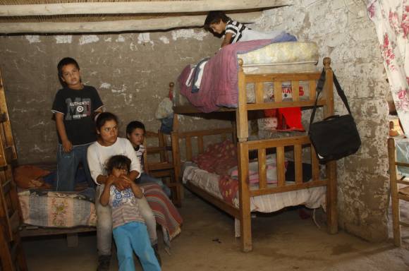 Carmen Estrella es madre soltera y además de hacerse cargo de sus hijos, también ayuda con sus nietos, que viven con ella. Trabaja, junto a una de sus hijas mayores, en la cosecha de aceituna. Sin embargo dijo que no le alcanza para pasar el mes. Y como si el hecho de vivir más de una semana en una escuela y con gente desconocida fuera poco, la familia de Carmen ahora atraviesa otro problema: no tener una casa. A pesar de que aseguran que están más cómodos que dentro de un aula, duermen amontonados porque la casa tiene sólo una habitación para todos. Es por esto que en tres camas chicas, una matrimonial y tres colchones que tiran en el suelo, los 16 miembros de la familia se las arreglan para pasar los días. La casita, además tiene una cocina comedor y baño en el patio. De esta forma viven desde hace dos meses porque la fuerte tormenta los dejó sin nada. Ellos tenían su precario rancho en la villa El Chilote y ahora viven en la villa El Lago, cerca del Camping Municipal. Y desde ahí esperan poder ver la casa que les prometieron. Por el momento sólo les construyeron una plataforma donde luego colocarán el módulo.