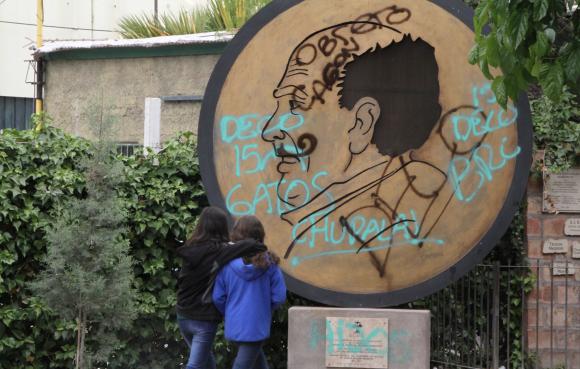 Los estudiantes ya limpiaron parte de las pintadas utilizando solventes de esmalte sintético, mientras que colaborarán con el repintado de los sectores, aunque resta hacer el arenado a una escultura y reparar el centro de estudiantes.