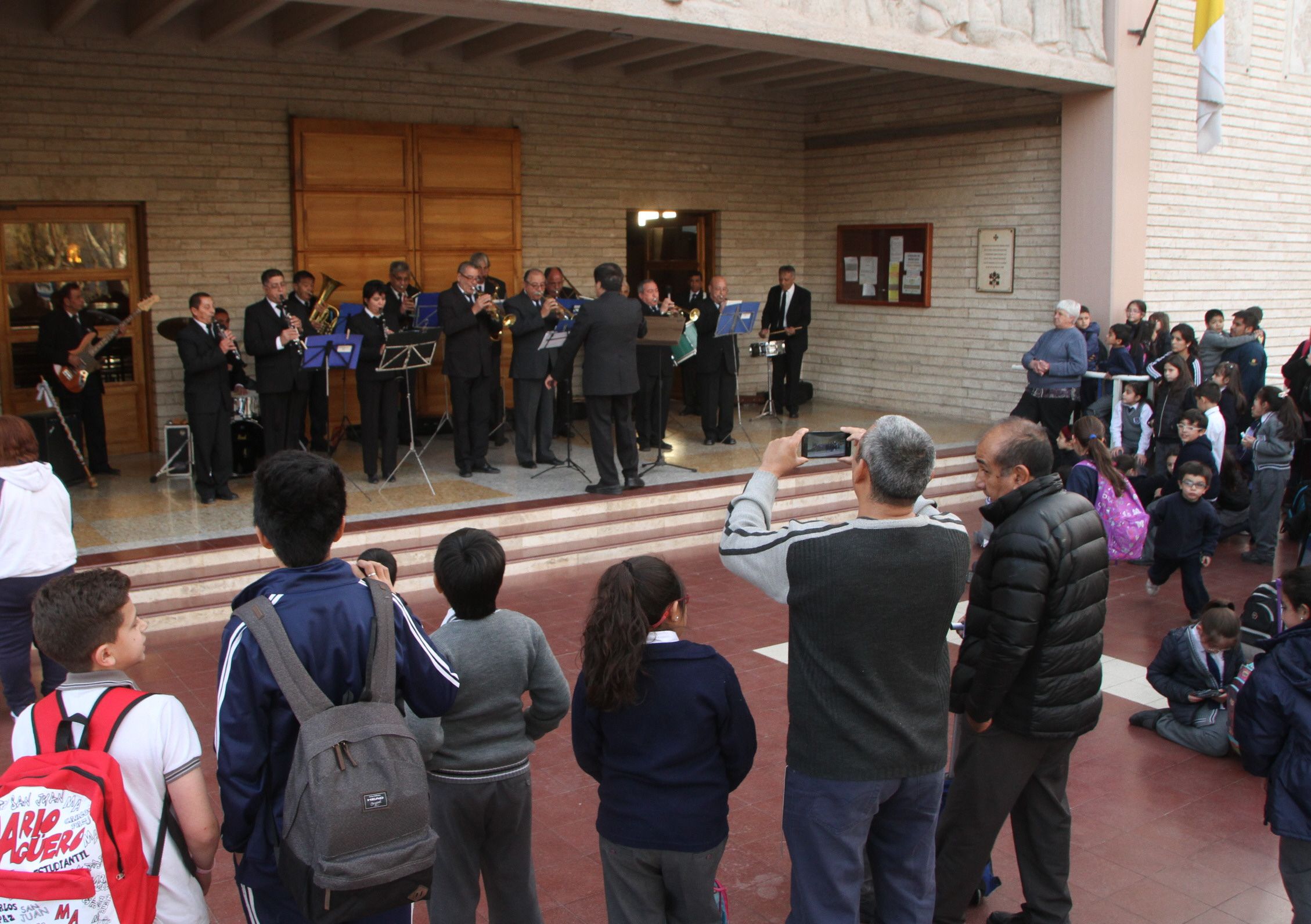 Fue Wilson Gómez quien comenzó a ejecutar la idea. "Convencido de que hay que atraer a la gente a la iglesia, sobre todo a los jóvenes, se me ocurrió la idea de armar una banda. Entonces recordé a mis superiores de cuando hice el servicio militar y los convoqué. En aquella época ellos formaban parte de la banda de música y yo sabía que continuaban reuniéndose. Por eso les propuse canalizar su talento para rendir homenaje a la Basílica", contó Gómez. Así, hace dos meses, estos hombres comenzaron a reunirse para ensayar. Con el visto bueno del párroco del templo, armaron un repertorio y están listos para salir a la calle a mostrar a la gente lo que saben hacer. Ayer, realizaron su primera presentación y lo hicieron para los alumnos del colegio Pérez Hernández, que está al lado del templo.
